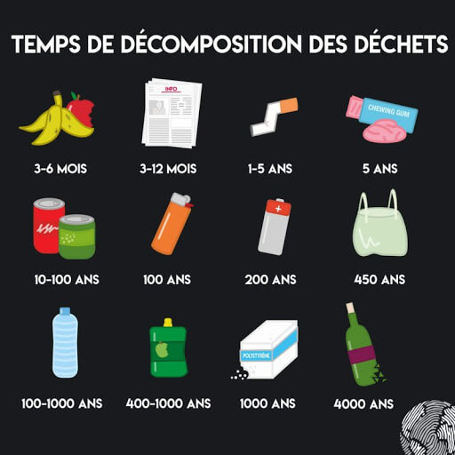 Du côté des mégots de cigarettes, cela prend entre 1 et 5 ans pour qu’ils puissent se décomposer. Si la majorité des mégots finissent à même le sol, et le reste en grande partie incinérée, sachez que les avancées technologiques ont permis avec le temps de séparer les matières organiques et les filtres afin de les recycler pour être ensuite compostés et réutilisés dans diverses productions, le nombre d’acteur dans ce domaine commence à se multiplier.